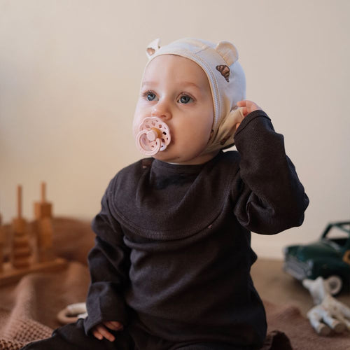 Oreilles baby helmet er fremstillet i vores basic rib-kvalitet, som kendetegnes ved at være fleksibel og behagelig for langt de fleste former.