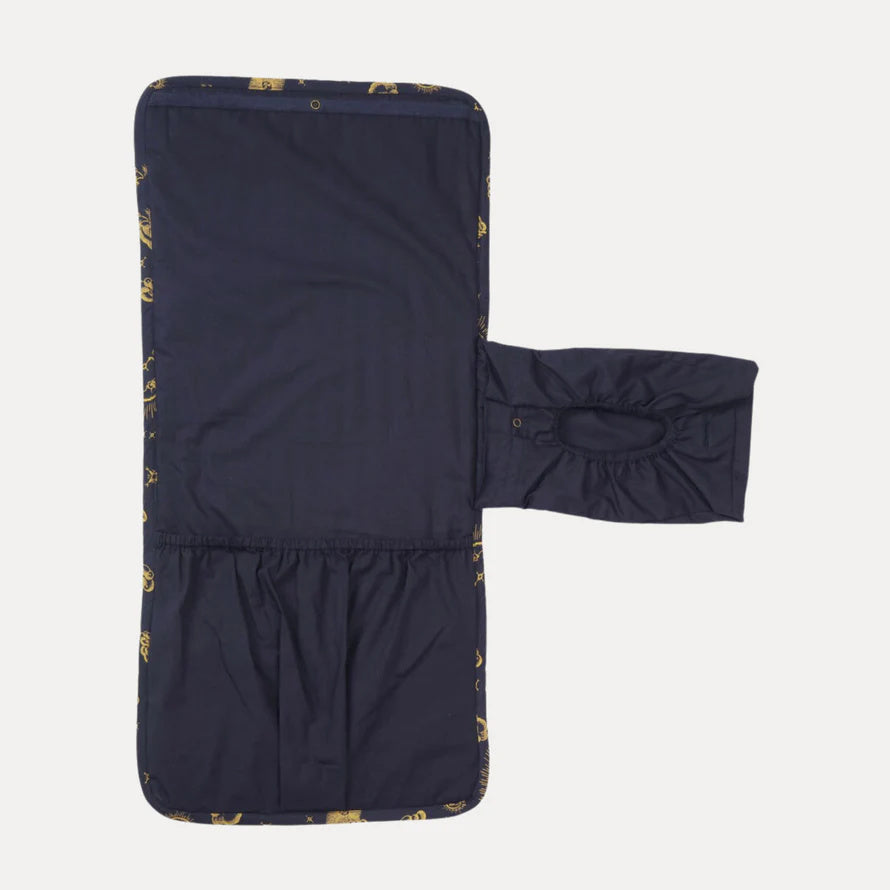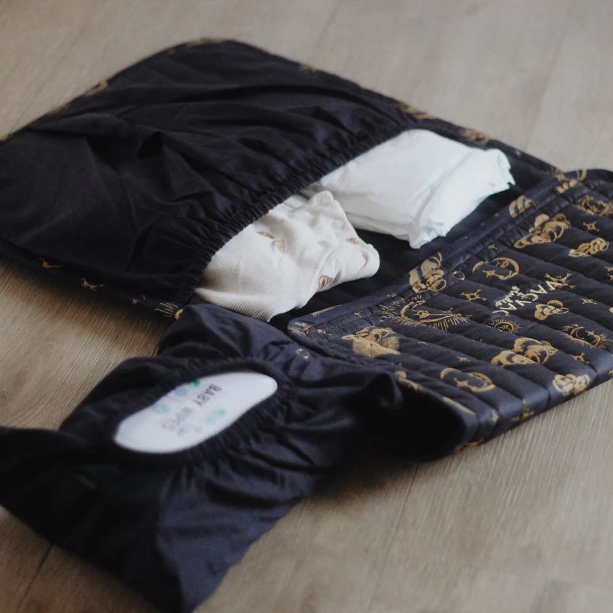 Quiltet på ydersiden, med praktiske opbevaring indvendigt til bl.a. vådservietter, bleposer samt lomme til bleer, tøj mm. Takket være elastiklukning forbliver tingene hvor de skal være!