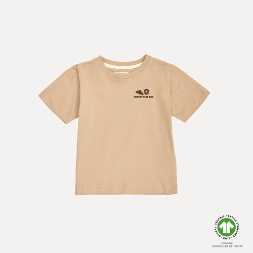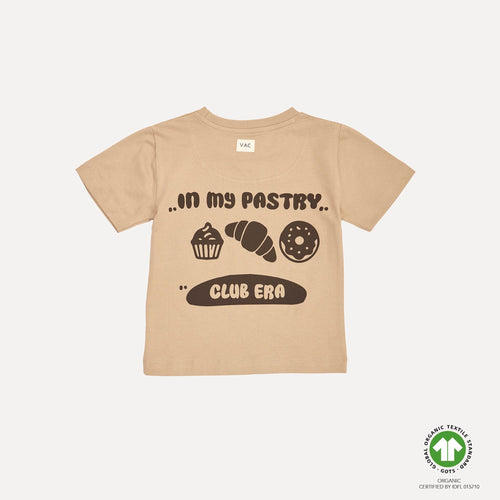 Olette blusen er en t-shirt med et behageligt regular-to-loose fit, der giver et afslappet udtryk. På brystet finder du et lille print med en donut, en croissant og citatet “Pastry Club Era”. Bagpå gentages motivet i en større rygprint-version, som tilfører ekstra kant til designet. T-shirten findes i 2 smukke farver - en lys brun og en mørkere brun.
