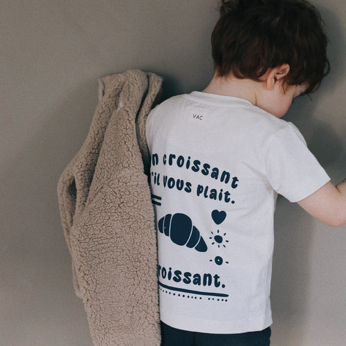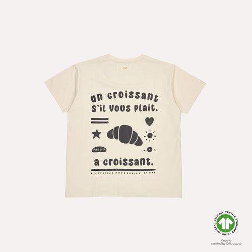 Rimont tee SS er en t-shirt med citatet "un croissant" printet på for og bagside. På fronten er det et lille print ved brystet og på bagsiden er det større.