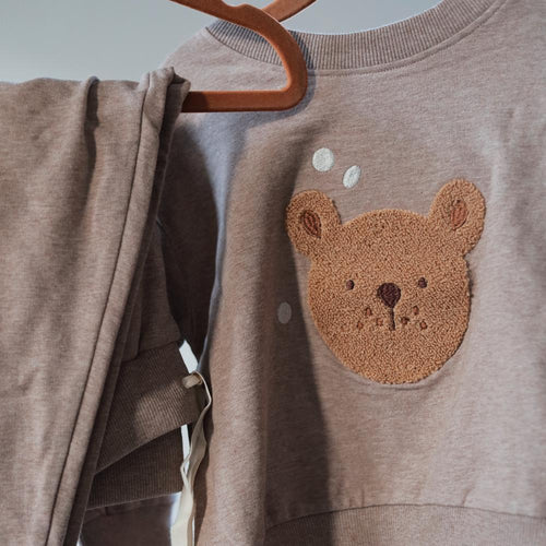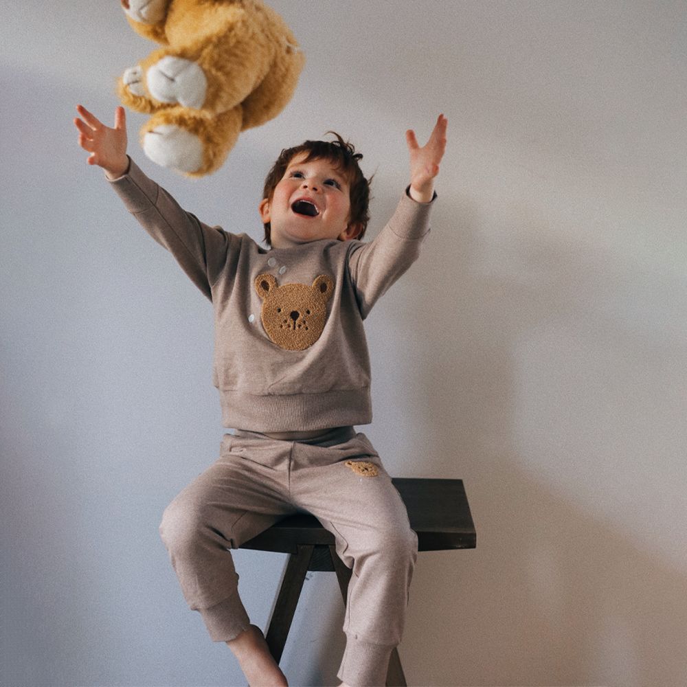 Das CHOLET Sweatset ist ein bequemes Set mit langen Ärmeln und lockerem Schnitt – perfekt für den Alltag und gemütliche Stunden. Sowohl Sweatshirt als auch Hose sind mit unserer Teddy-Stickerei versehen, ein feines und einzigartiges Detail, das dem Set eine besondere Note verleiht.