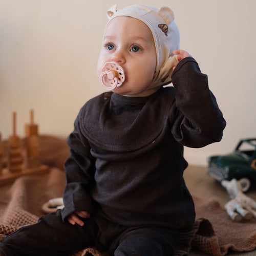 The CARLET long-sleeve suit with signature embroidered croissant is part of our basic series. It is soft and comfortable, perfect for both play and relaxation.