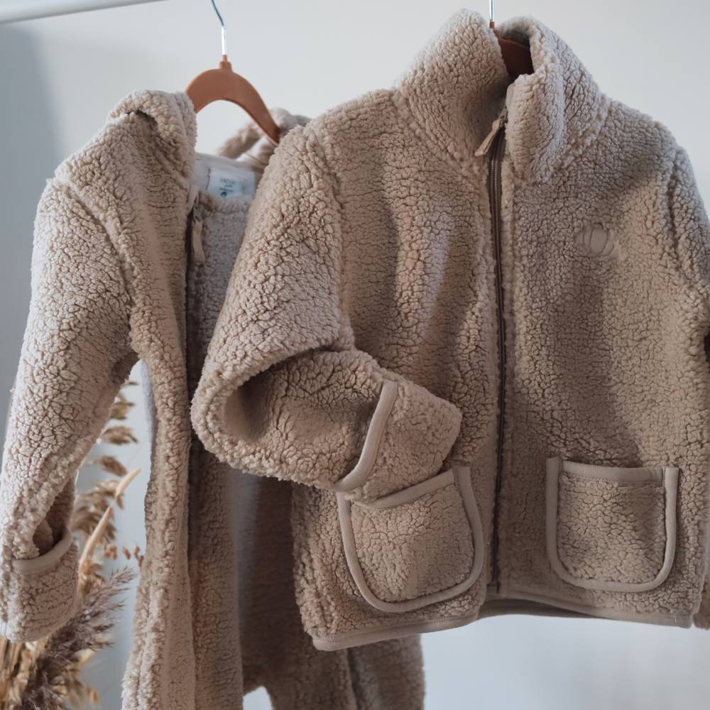 MELUN jacket is a jacket made of teddy fabric with front pockets. It comes in the finest iced coffee color.