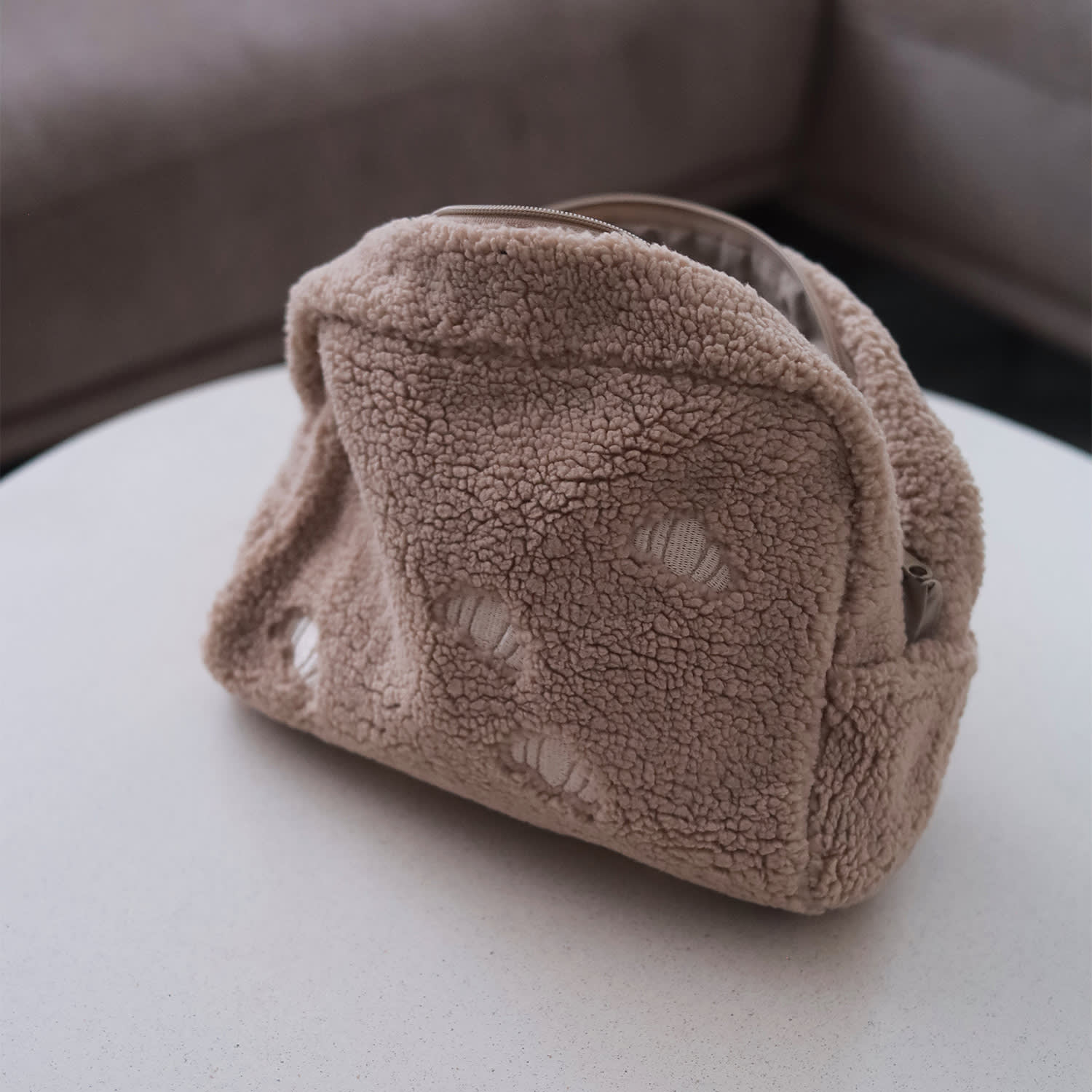 Vores COLOGNE toilettaske er blød og stilfuld i teddy-stof fremstillet af 100% genanvendeligt polyester. Tasken har ét rummeligt hovedrum samt en praktisk inderlomme med lynlås, som gør det nemt at organisere dine essentials. Den elegante Iced Coffee-farve gør den ideel til både hverdag og rejse.