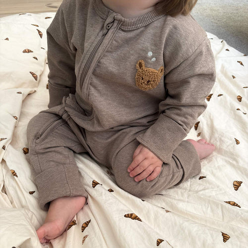 CHOLET natdragt er en blød og komfortabel heldragt med lange ærmer, perfekt til søde drømmestunder. Dragten lukkes nemt med en praktisk lynlås og har vores fine Teddy-broderi på det ene bryst – en lille, unik detalje, der gør natdragten ekstra sød.